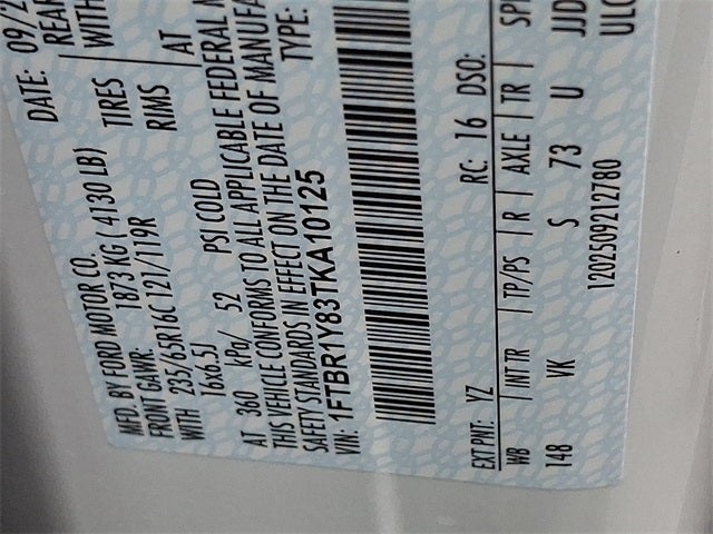 VIN: 1FTBR1Y83TKA10125
